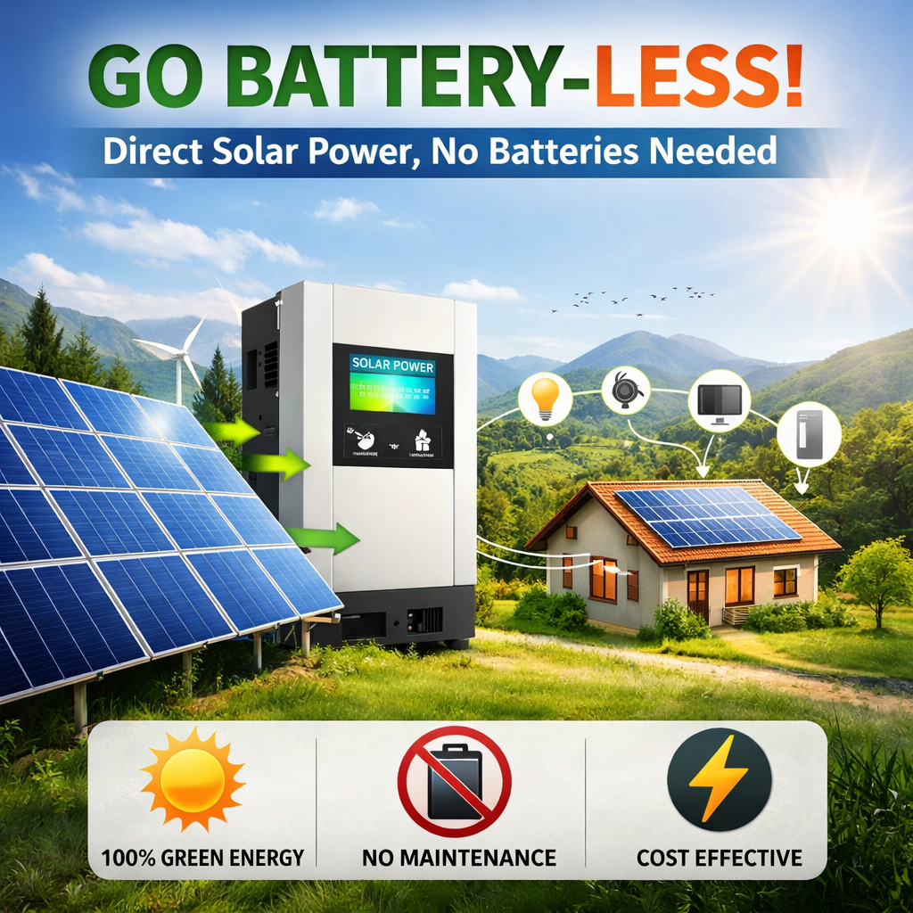 We design and install reliable solar solutions for homes, businesses, and industries. From battery-less systems to commercial plants, we help you reduce costs and gain energy independence.